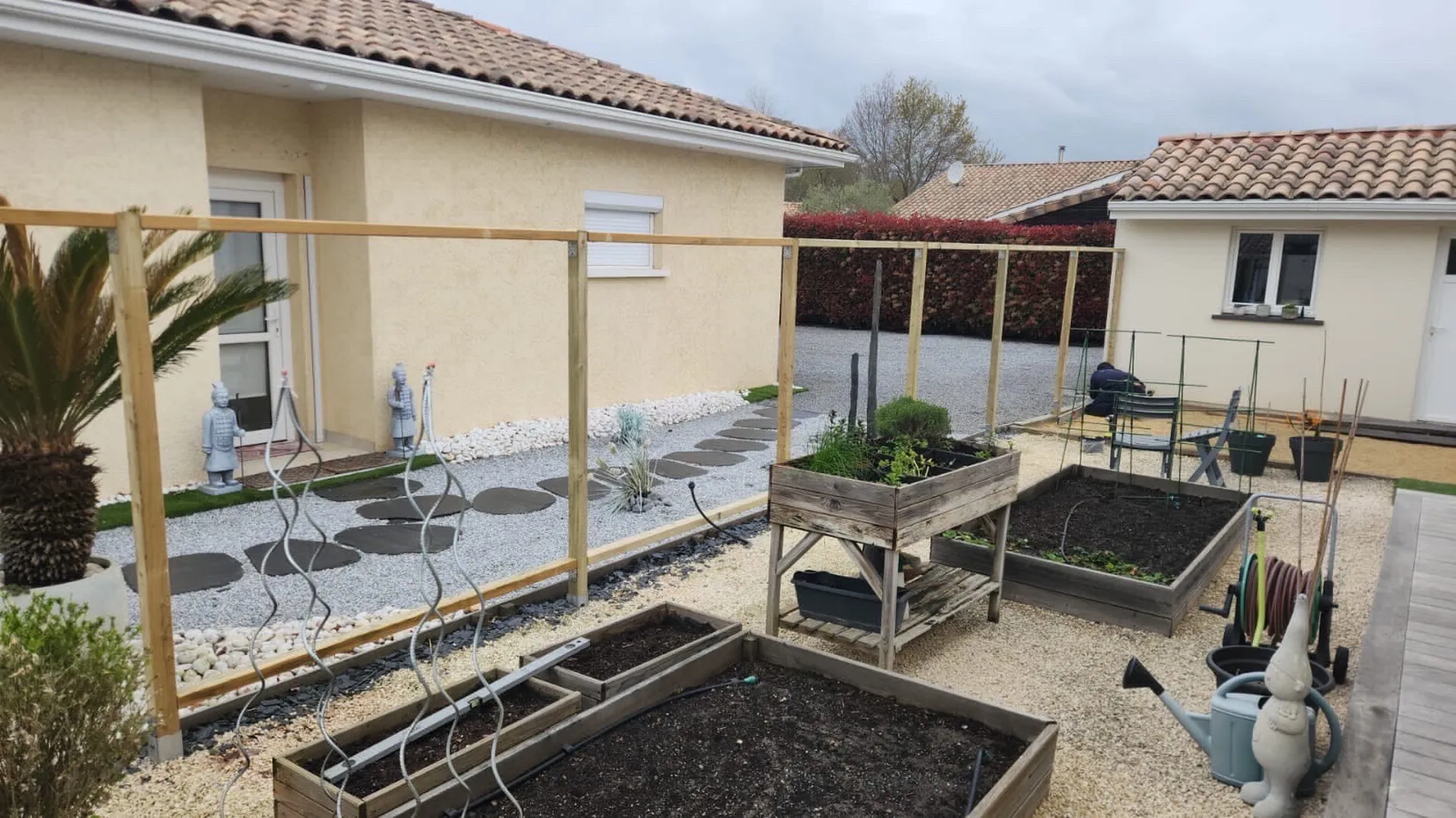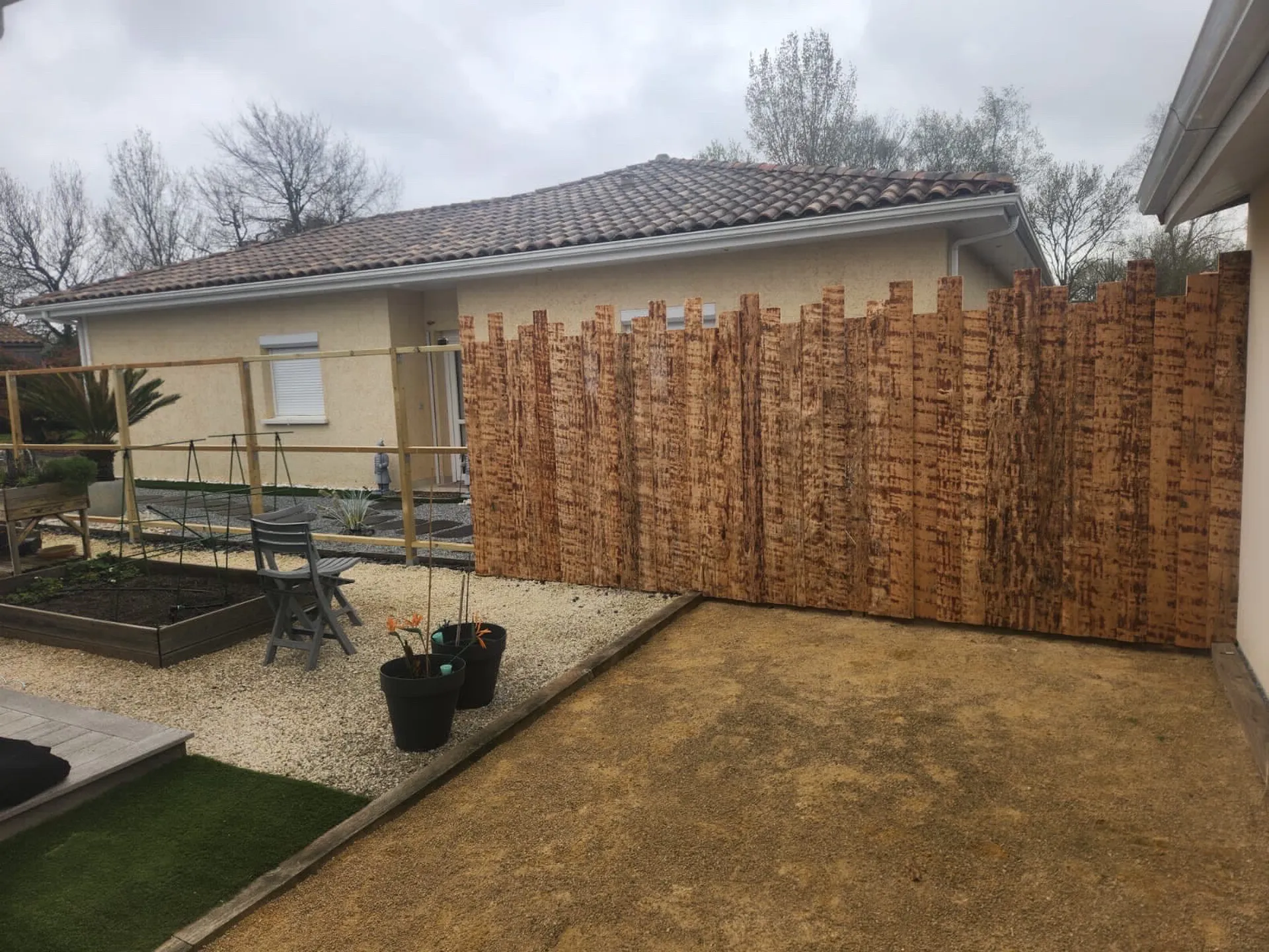 Ce type de clôture bois sur mesure dans les Landes est idéal pour accompagner un projet complet : aménagement de jardin, terrasse bois, création de massif ou gazon adapté aux sols sableux.
