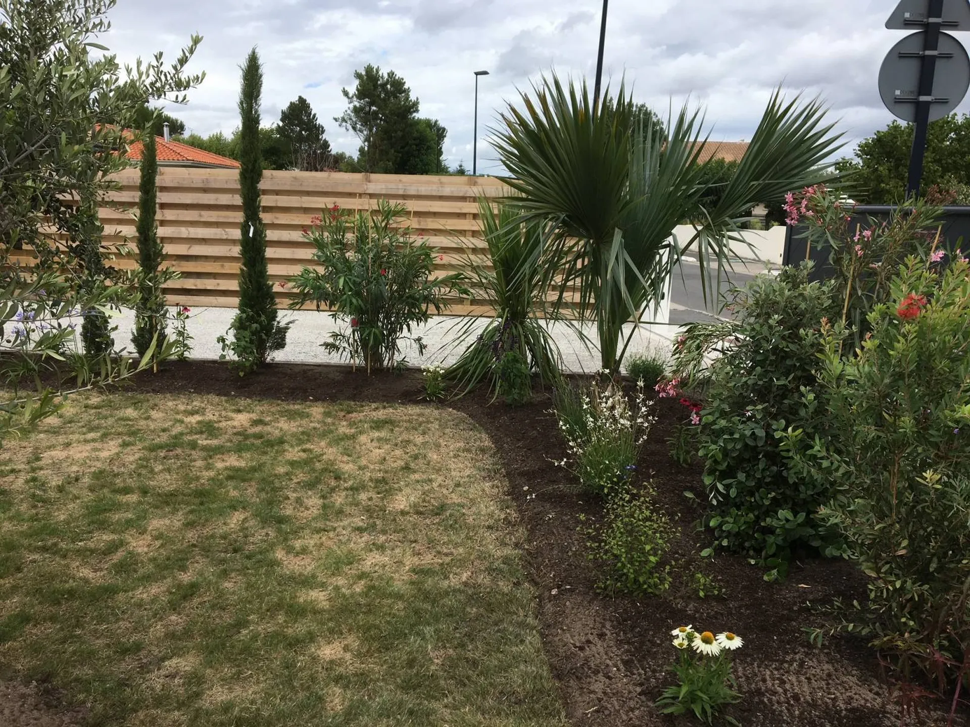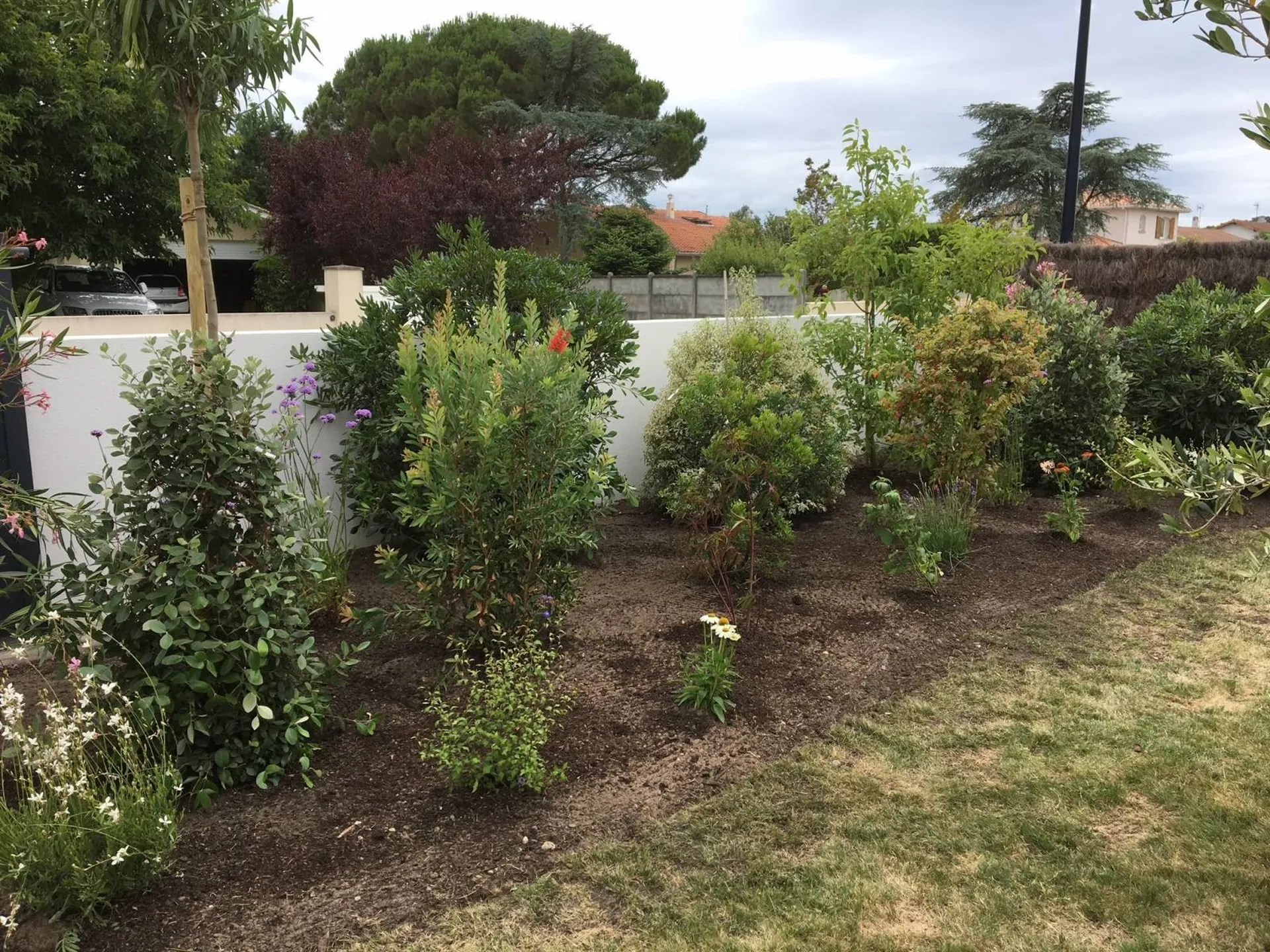 Les arbustes à floraison printanière et estivale, tels que les lilas, les roses et les hortensias, offrent une explosion de couleurs et de parfums. Ils attirent également les pollinisateurs tels que les abeilles et les papillons. Les vivaces, telles que les hémérocalles, les lupins et les hostas, sont des plantes qui reviennent chaque année et qui nécessitent peu d'entretien. L'aménagement paysager végétal que nous avons créé pour notre client à la Teste-de-Buch a non seulement amélioré l'aspect esthétique de sa propriété, mais a également créé une barrière naturelle pour atténuer les nuisances sonores de la route.